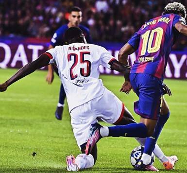 There were sime noticeable absentees in this star battle: with Ballon d’Or winner Demebéle, Doué, Kvaratskhelia, captain Marquinhos and Raphinha all missing this Champions League match. Ballon d’Ors runner up Lamine Yamal, however was present.